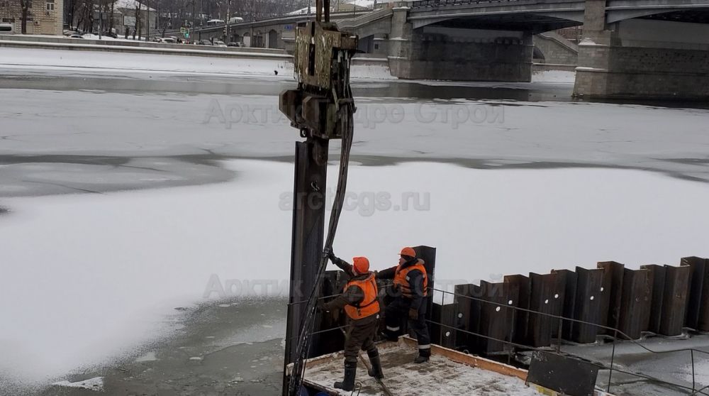 Вибропогружение шпунта Л5-УМ при строительстве искусственного сооружения в русле реки Москвы