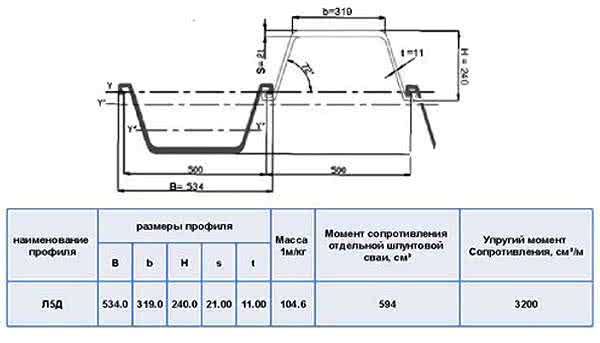 • отличные прочностные характеристики шпунта Ларсена Л5Д при сравнительно небольшой массе;