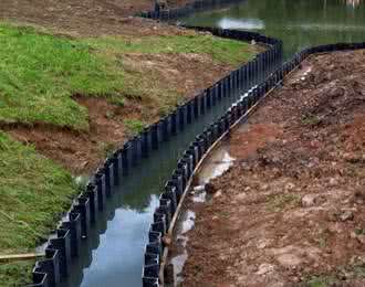 Шпунтовое ограждение герметично. Оно состоит из ряда свай-шпунтов, установленных вплотную друг к другу по проектной линии (границе котлована, укрепляемой части берега и т.д.) и соединенных пазогребневыми замками.