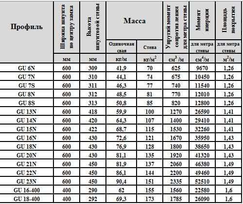 Технические характеристики шпунта GU