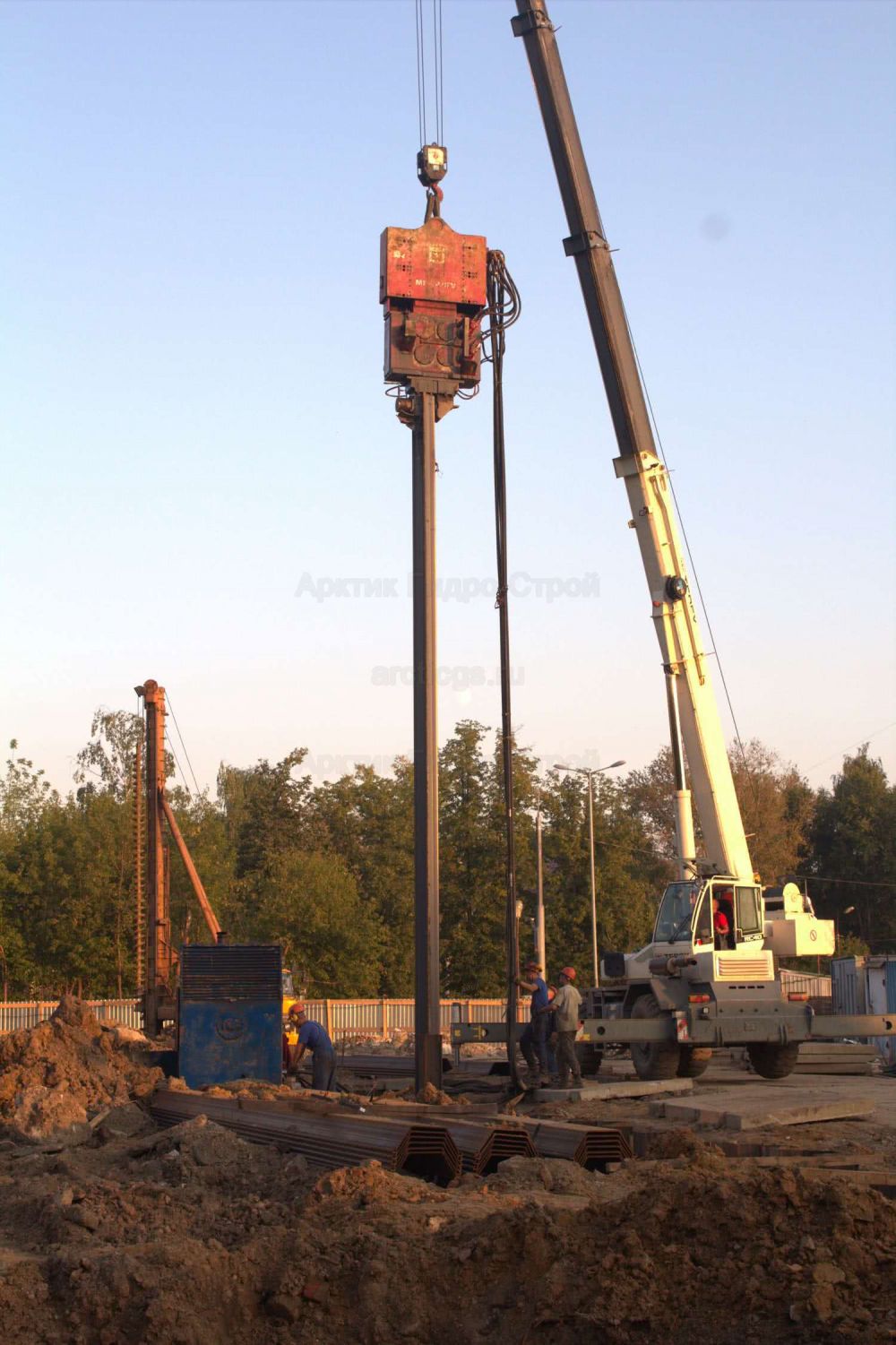 При данном методе погружения шпунт преодолевает силу трения боковой поверхности и сопротивление под острием за счет вибраций специальной техники.