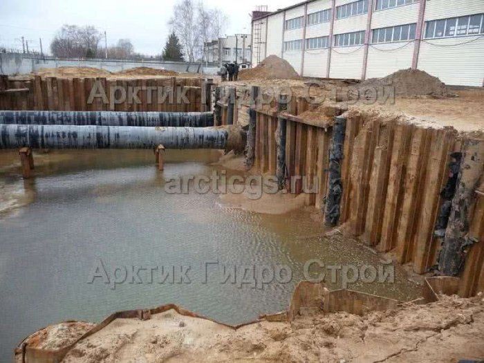 Установка шпунтовых ограждений на очистных сооружениях многоквартирных домов.