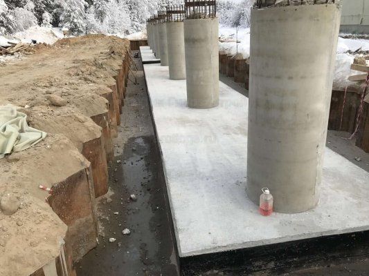 - Закладка фундамента под опоры и установка самих опор. На слабых грунтах мы устанавливаем свайные фундаменты.