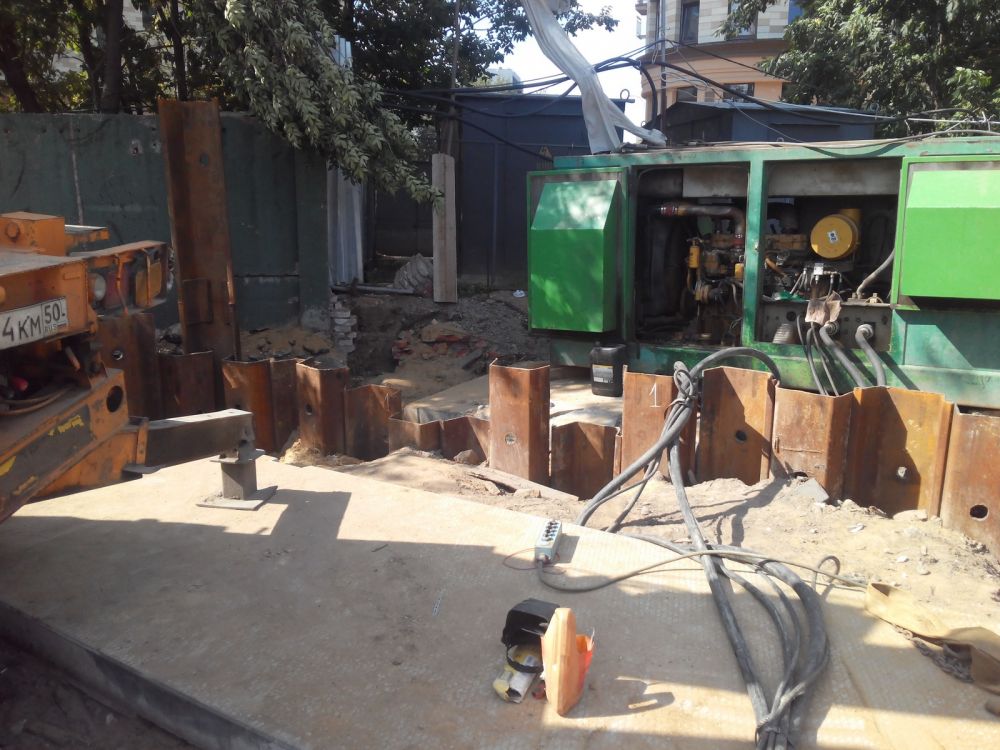 Устройство шпунтового ограждения из шпунта Ларсена методом вибропогружения на объекте строительства административного здания в г. Москва, ул. Байкальская, 42.