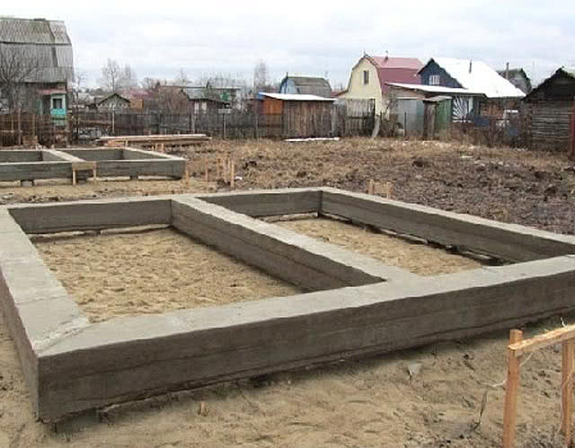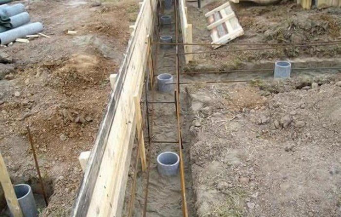 1. Роют траншею расчетной ширины. Глубина должна быть такой, чтобы оголовки свай возвышались над грунтом на 25-30 см.