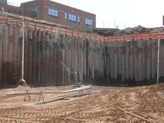 Такое ограждение применяется для того, чтобы защитить стены вырытого котлована от осыпания и обрушения, которое ему грозит вследствие проведения работ по забиванию свай.